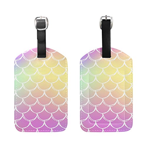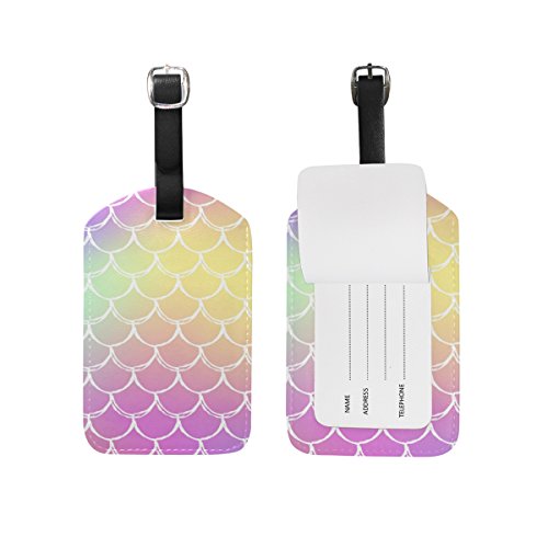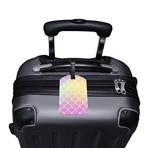 (ALAZA)/Accessories/Luggage, Bags Travel/DIRECT FROM USA/Cooper girl Rainbow Fish Scale Luggage Tag Travel ID Label Leather for Baggage Suitcase 1 Piece