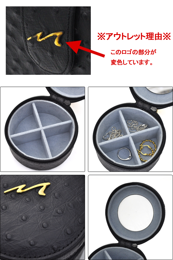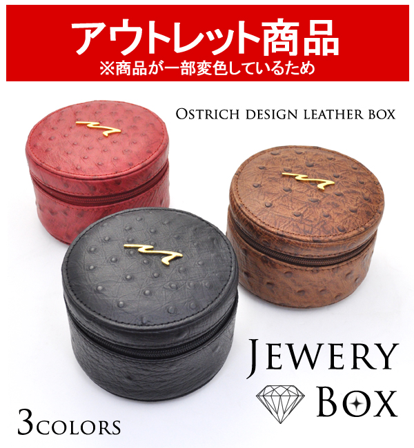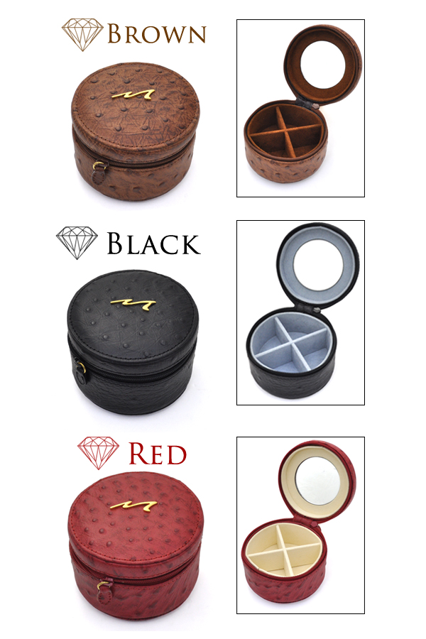 丸型のオーストリッチ風レザーのジュエリーボックス 。