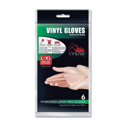 Wholesale CASE of 25 - Medline Venom Disposable Vinyl Gloves -Disposable Gloves, Vinyl, Latex-free, L/XL, 6/PK, Clear