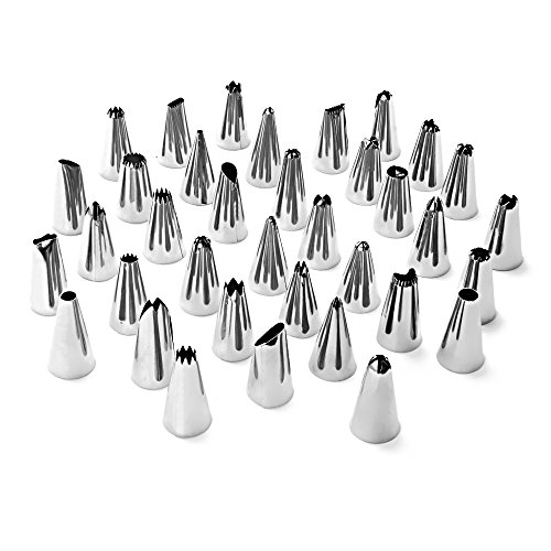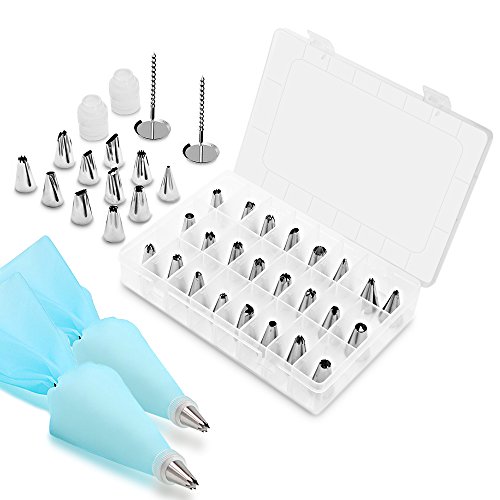 - Cake Decorating Supplies Kits: 36 Stainless Steel Icing Tips 2 Silicone Pastry Bags, 2 Flower Nails, 2 Reusable Plastic Couplers Supplies Frosting Tools for Cupcakes Cookies.