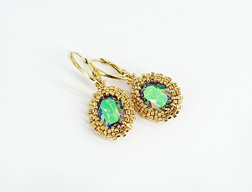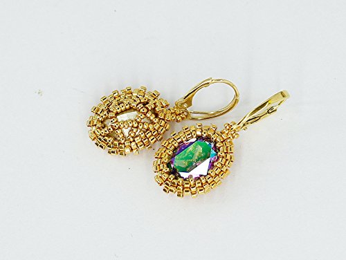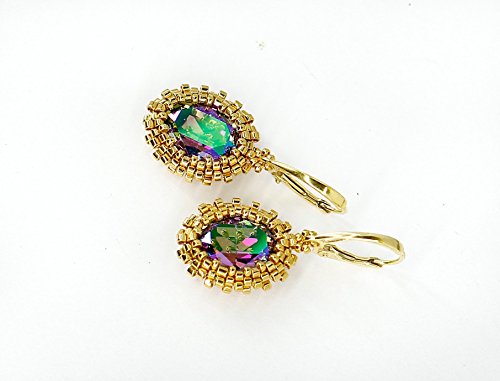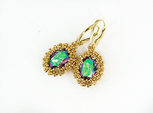 -. Brand : Julia Lavrik Design -. Color : Paradise Shine, Rainbow, Multicolor -. Department : Women -. ProductGroup : Guild Product -. ProductTypeName : GUILD_JEWELRY -. Title : 24k Gold filled Luxury High Fashion Beadwork Earrings with Rainbow Paradise Shine Swarovski crystals Gift for Women Handmade Jewelry Drop/Dangle Leverback
