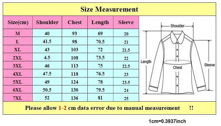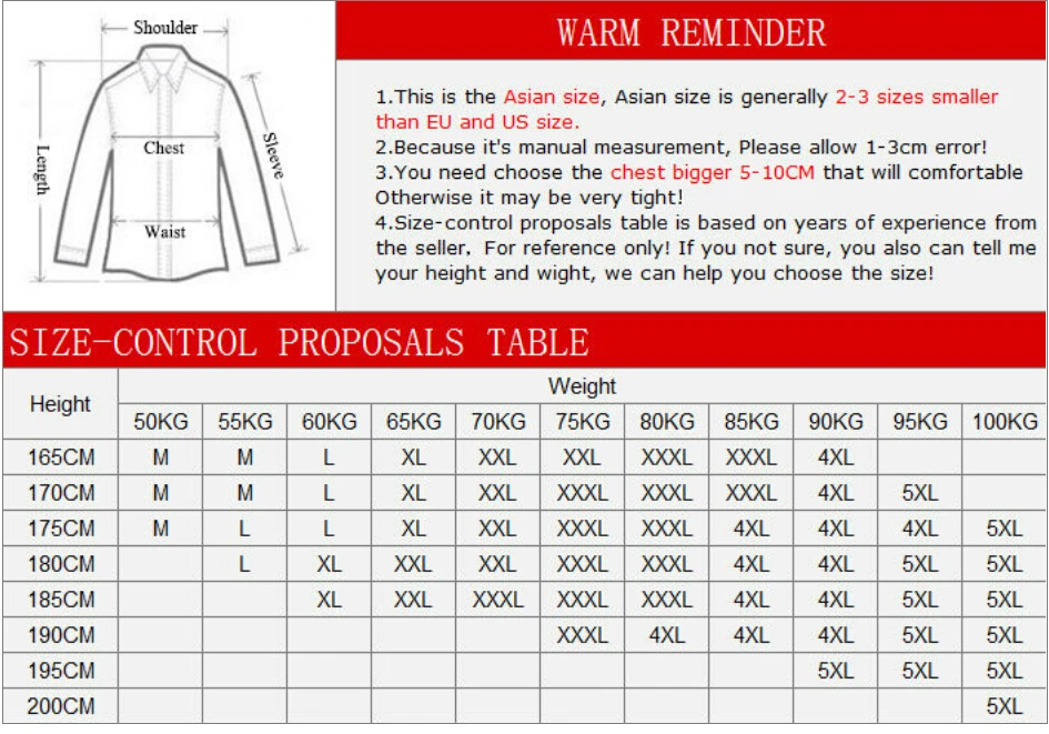 size:Asian size M L XL 2XL 3XL 4XL 5XL 6XL 7XL