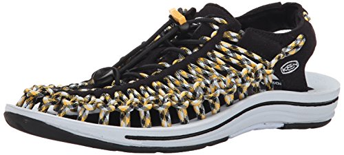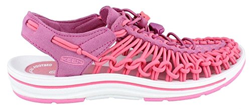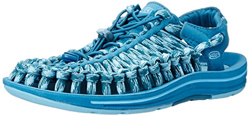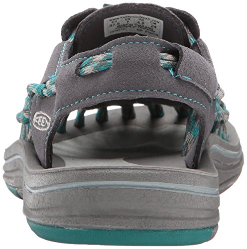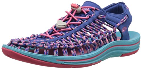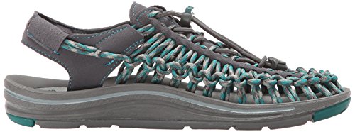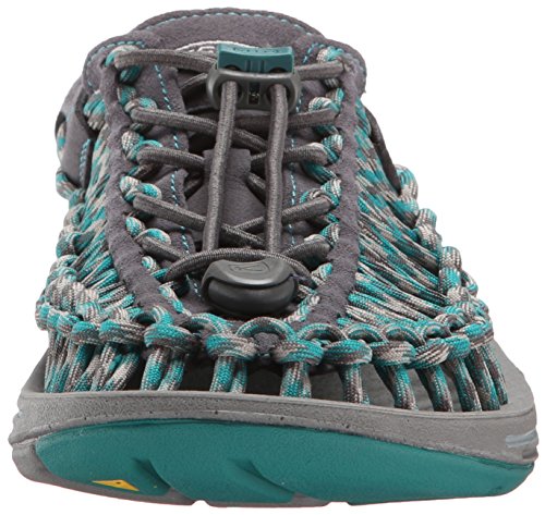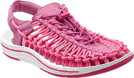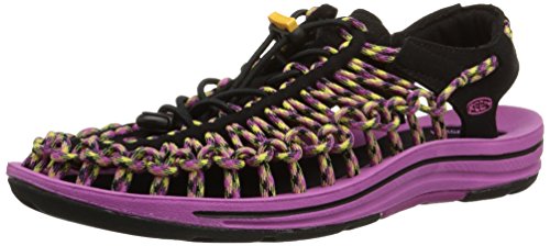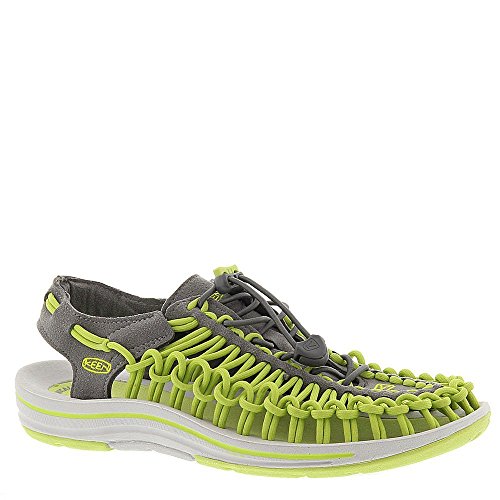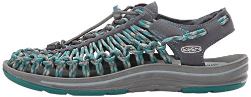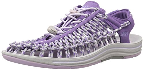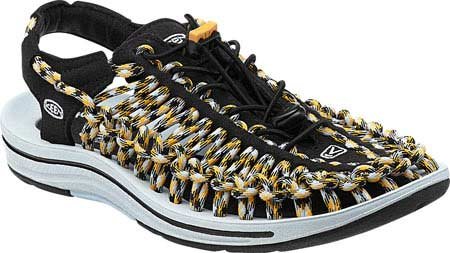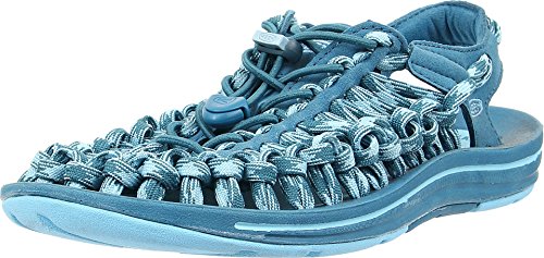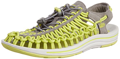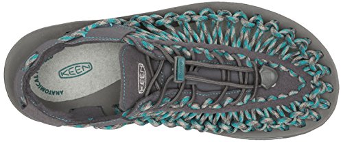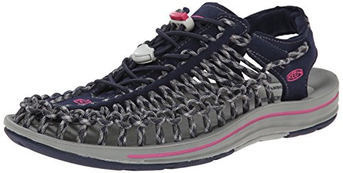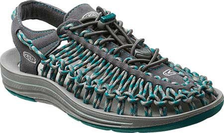 Women's Keen, Uneek stretchy sports Sandal This UNEEK sandal molds to your foot for a perfect fit! Upper features two cord constructions that move and adapt to the shape of your foot Bungee lace with toggle closure for a perfect fit Cushioned metatomical footbed for added comfort Lightweight midsole for added durability and comfort Non marking rubber outsole with razor siping for added traction
