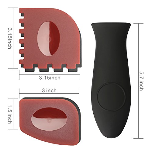 SILICONE HOT HANDLE HOLDER:The handle holder is made up of high heat resistance silicone, fits for all cast iron cookware. It designs for a secure and comfortable grip and it can protect your hands up to 470 Degree F.
