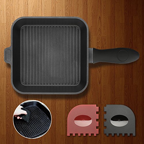DURABLE PLASTIC PAN AND GRILL SCRAPERS:The items offer you a easier way to clean your skillets or grill pans, its straight edges and curves is specialized for flat and curved areas with heat resistance up to 290-degree F.