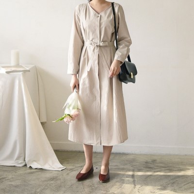 여성스러움이 느껴지는 디자인의 원피스로 함께 구성된 벨트와