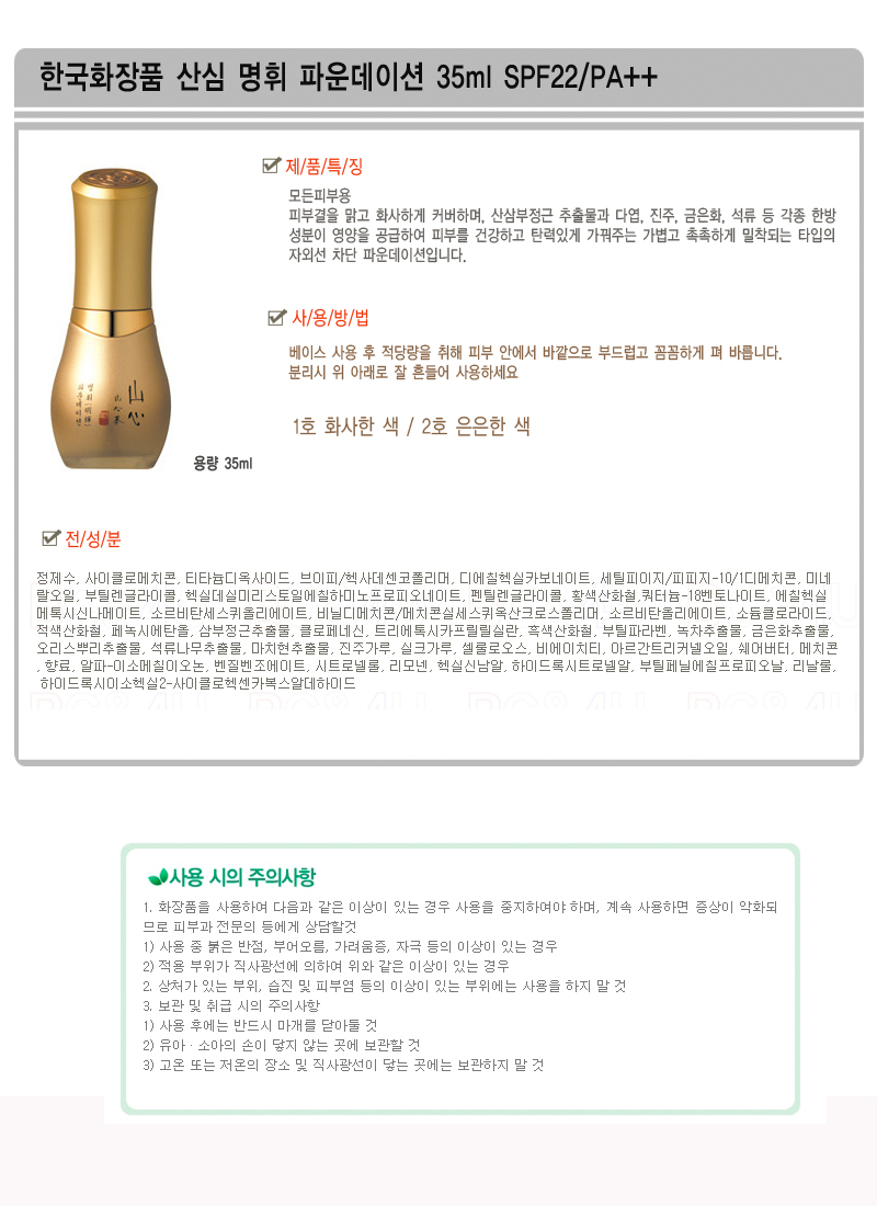 Korea Cosmetic sansim myeonghwi Foundation 35ml