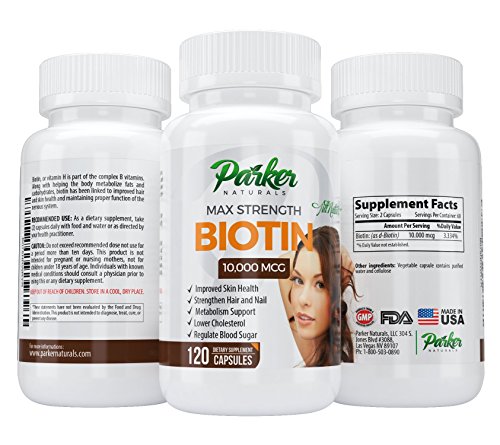 Studio : Geneva Supplements Publisher : Geneva Supplements Binding : Health and Beauty Product Description HEALTHIER HAIR Biotin by Parker Naturals recovers the health and luster of your hair, skin, and nails with a potent 10,000 mcg dose. This powerful approach targets deficiencies from the inside out, encouraging blood flow to get nutrients to the scalp and root, supplementing the body's natural restorative processes, and kickstarting fast, healthy growth cycles. GLOWING SKIN In addition to lustrous hair and strengthened nails, you'll also see the benefits shining through your skin. Enjoy replenished, moisturized skin that fills out to a smooth, supple look. With dryness reduced and elasticity increased you'll feel fully confident with your results. STRONGER NAILS Wave goodbye to cracked, split, chipped fingernails. Our high quality, pure biotin supplement includes supercharges your nail growing thickness and length. METABOLISM BOOST Our biotin also stokes your body's fat burning fires to fully leverage your healthy diet and exercise regimen. With your metabolism operating in high gear, you'll burn fat more easily and have the energy you need to tackle your busy day and workout schedule. THYROID SUPPORT Biotin also optimizes your thyroid function and overall body wellness. Thyroid health is essential to the proper regulations of vital organs like the brain, heart, liver, kidneys, and skin. -Parker Naturals Biotin -High Potency 10,000 mcg -Promotes Hair, Skin Nail Health -Enhances Metabolism -120 Capsules 0