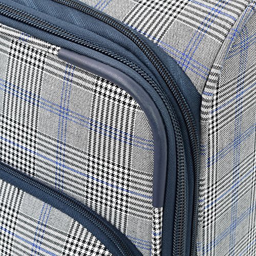 -. Feature : Lightweight woven plaid or micro-ballistic polyester material / Hyper light chassis with grid base for superior strength / Trolley has aluminum channel tubes for added strength / Ergonomic comfort grip locking trolley handle / 17x11x25