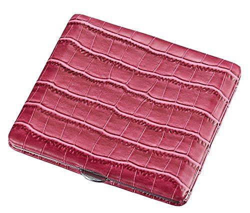 Feature : Genuine Pink Leather with Crocodile Design Top and Premium Quality Stainless Steel Body / Holds Up to 10 Regular Size Cigarettes with a Metal Spring Arm to Secure Them (Single Sided) / Dimensions - Weight: 3.3 oz.; Height: 0.5 in.; Length: 3.92 in.; Width: 3.8 in. / Carry Around Cigarettes in Style and Keep Them from Getting Crushed / Comes Packaged in a Cardboard Box that is Easy to Gift Wrap