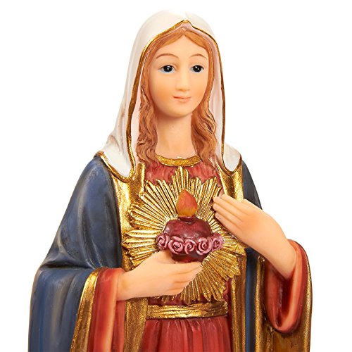 Virgin Mother Mary Figurine - Catholic, Religious, Resin, Sagrado Corazon Statue for Christmas Nativity, - 3.7 x 11 x 2.5 Inches