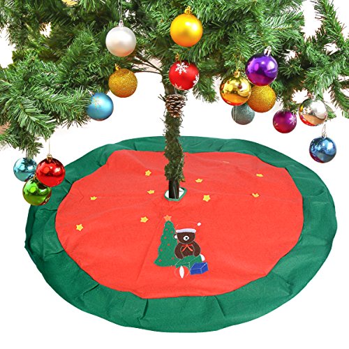 Saim Christmas Red Round Tree Skirt 43" Diameter Xmas Tree Decor Skirt Cover Apron Wrap for Home Party Holiday New-Year Decoration Ornament
