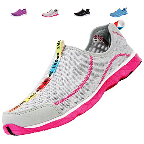 -. Feature : HOW TO CHOOSE SHOES SIZE----Just select the US size which you wear, you will get a suitable size water shoes. If not, you can make a exchange for free and without any reason. Take care of the US-Women or US-Men / LIGHTWEIGHT AND COMFORTABLE----Breathable and durable air mesh upper allows your feet to breathe freely. Slip on style, easy to put on and take off. The weight 210-250g per pair is lightweight and very easy to carry and wash / REMOVABLE INSOLE----Cushion absorbing rubber insole with punching, give extra support for the sole, that creates a cooler and healthier shoe environment. Sand will not get into the shoe from the insole / DRAINING OUTSOLE----Ventilated porous drainage hole designed on the bottom for easy drainage, effectively reduce the resistance when wading, keep the friction between sole and ground to reduce the possibility of slipping, which make it more secure for outdoor walking / SUITABLE OCCASIONS----Perfect for swimming wear, snorkeling, sup yoga and kayaking, surfing, kayaking, canoeing and all kinds of aquatics.