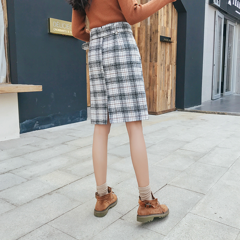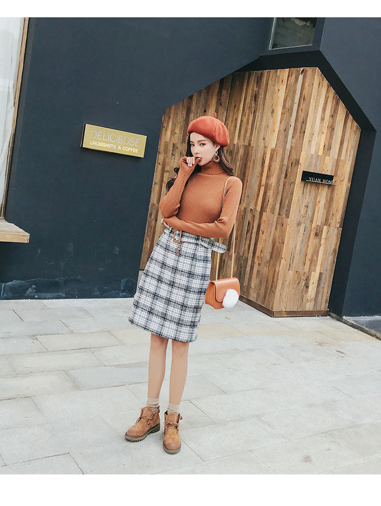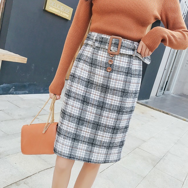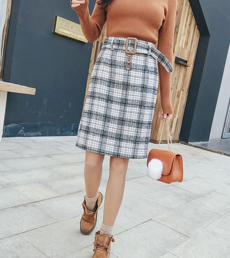 ひざ丈とハイウエストに映えるベルト付きがポイント!