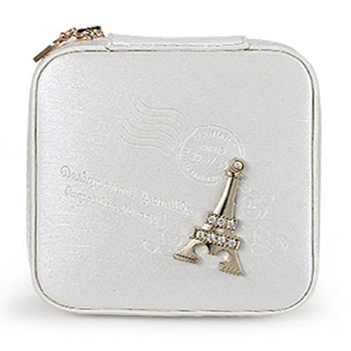 Cozhome 1PC Small Travel Jewelry Leather Box Organizer Storage Case For Earrings (Eiffel Tower-White)