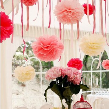 Generic Pack of 10 Aqua blue Wedding Decorative Props Tissue Paper Pompoms Pom Poms Balls Wedding Party Home Decoration 10" (25cm)