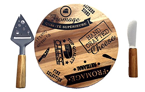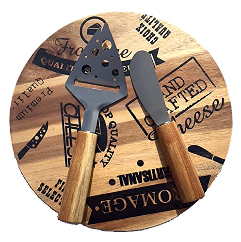 Chef Series Hand Crafted Acacia치즈 도마 보드와 부엌칼 나이프 세트,Acacia치즈 도마 보드와 2에 10.25Acacia스틸 치즈 부엌칼 나이프 로원A북스 타일 기프트 박스세트of 3