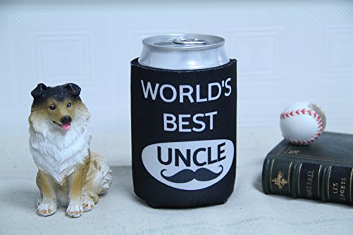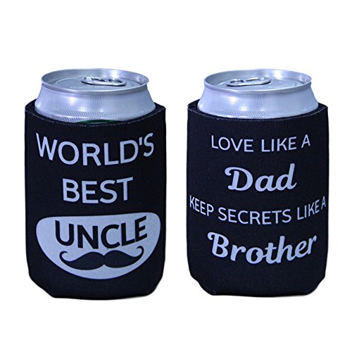 Tainada Neoprene Beer Beverage Drink Can Coolie Cooler Insulators (2 pcs,Double Sided Printing) with One Bonus Absorbent Coaster (World's Best Uncle)