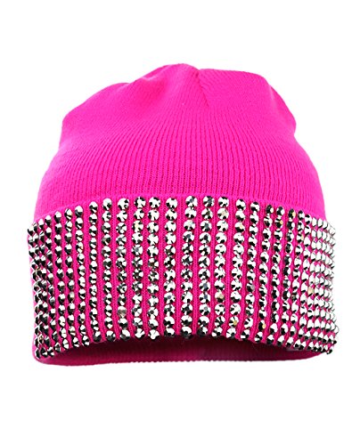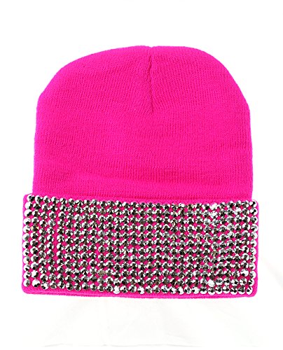 Product Description Solid Color Rhinestone Studded Winter Warm Cuff Skull Cap Beanie Hat. Fashionable and trendy for the winter. Accessorize with this beanie to match an eye-catching outfit. 0