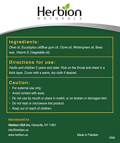 ReleaseDate : 2017-05-20 Studio : Herbion Naturals Publisher : Herbion Naturals Binding : Health and Beauty Product Description Herbion Chest Rub is an ointment that contains the optimally balanced blend of carefully selected oils which provide the synergistic soothing effect.