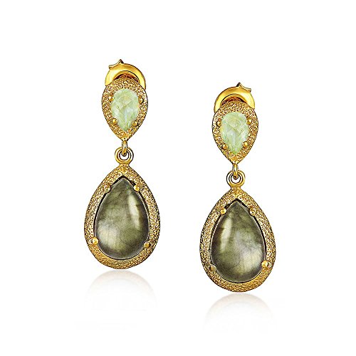 -. Feature : Exude stunning boho chic style with the beauty of natural gemstones witb these sublime drop earrings. Highlighed by a lustrous double teardrop design accented by mesmerizing labradorite and prehnite stones finished in gold plated .925 silver. / For Pierced Ears, Post with Friction Back / Material: .925 Sterling Silver, Gold Plating, Labradorite, Prehnite / Measure: 1.10 in L x 0.45 in W / Weight: 4.1 Grams