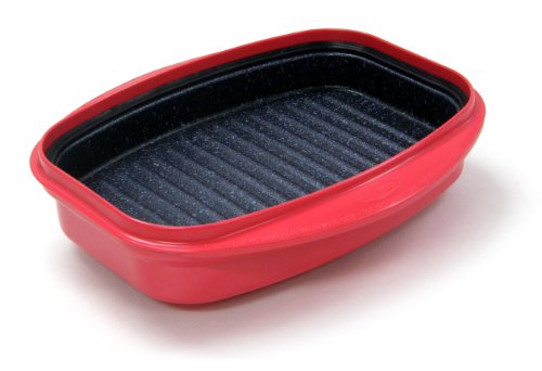 Microhearth Grill Pan is a revolutionary pan used in your microwave that its cooking results may surprise you. The results are moist and flavorful foods that utilize the microwave oven's convenience; while enduring natural flavor and freshness. With this Pan, you can saute and grill your favorite foods and recipes in the microwave in less time than usual. You'll find this cookware is easy to use and will soon become a favorite in you kitchen to grill sandwiches, vegetables, meat and fruit. A wise investment saving you both time and money. With Microhearth Grill Pan, you can now enjoy your favorite foods and recipes at anytime and at wherever microwave oven is accessible. It is even great for RV, school dorm and break room. Microhearth Grill Pan is durable and high-heat resistant that components that nest together making it versatiles and compact for easy storage. Nonstick coated metal pan with raised base gives food seared grill marks and keeps them out of drippings. The durable body is formulated to safely perform under hottest temperatures. Ceramic-coated metal Lid with standing handle allows you to conveniently rest it upright so moisture does not drip on the counter. Ceramic-coating is especially designed for use in the microwave and eliminates the "microwaves" that normally causes dryness by penetratin through the food druing cooking.Feature