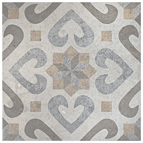 SomerTile FEM13LDM Lema Ceramic Floor and Wall Tile, 13.125" x 13.125", Grey/Brown/Blue