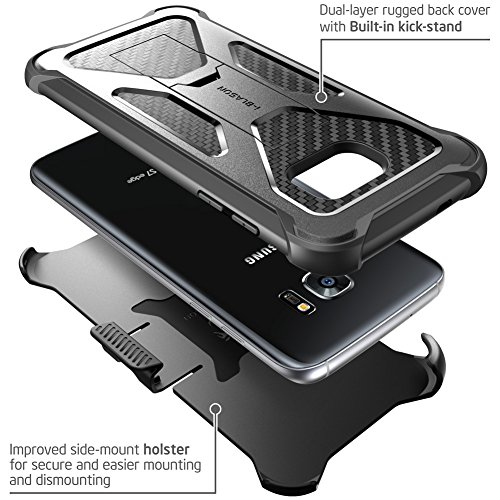 Galaxy S7 Edge Case, i-Blason Prime [Kickstand] Samsung Galaxy S7 Edge 2016 Release [Heavy Duty] [Dual Layer] Combo Holster Cover case with [Locking Belt Swivel Clip] (Black)
