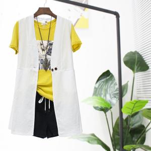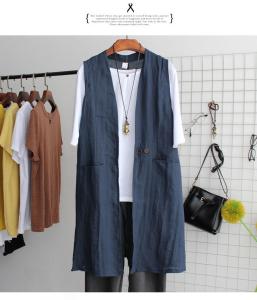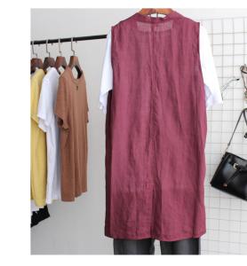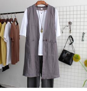 リネン素材 羽織り ノースリーブ ジレ 膝丈 襟付き 大人カジュアル プチプラ シンプル ボタン 春夏 トレンド