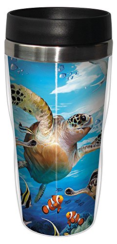 Sea Turtles and Friends Travel Mug, Stainless Lined Coffee Tumbler, 16-Ounce - Howard Robinson - Gift for Turtle Lovers - Tree-Free Greetings 25811
