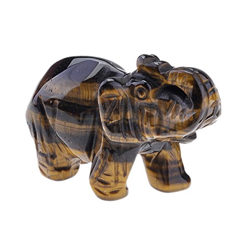 JOVIVI Natural Rose Quartz/Aventurine/Tiger Eye/Opalite Carved Gemstones Elephant Figurine 2'' Room Decoration, with Gift Box (Tiger Eye)