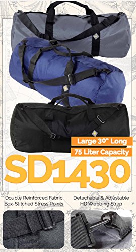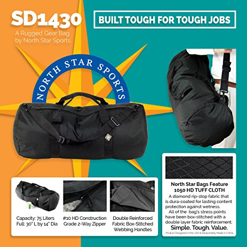 North Star: The Gear Bag You Can Trust The SD 1430 is a versatile duffle gear bag for everyday use or even luggage, travel gear and storage. The SD 1430′s features include: - 1050 HD TUFF CLOTH Fabric - 14″ Diameter by 30″ Length Vestibule - 75 Liter Capacity - Full Length #10 Construction-Grade HD Zipper - Double Reinforced Fabric Box-Stitched Stress Points - Dura-Coated Fabric for Lasting Content Protection - Wraparound HD Webbing Reinforced Handles - Detachable and Adjustable HD Webbing Strap - Product Designed in the USA - Available in Three Colors About North Star Duffle Bags: North Star Bags is committed to producing durable gear bags at a low price. Every material that we use in the construction of our duffel bags is tough and heavy duty. From the 1050 HD TUFF CLOTH fabric to the construction grade #10 zippers ? we have thought of everything. We keep the design simple, effective, and ultimately efficient: the wraparound handles form a continuous loop for maximum load bearing strength, the zippers run the full length of the bag, all of the stress points in the fabric are double layered and box stitched. We find value in providing an honest product at a terrific price. North Star Bags is a subsidiary of North Star Sports USA. 0
