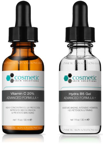 -. Binding : Misc. -. Brand : Cosmetic Skin Solutions LLC -. EAN : 0049022451360 -. Feature : All Cosmetic Skin Solutions products' are Manufactured in our FDA-Registered laboratory facility under strict US FDA guidelines. Made in the USA. No Parabens. No Oils. Cruelty-Free. / This Best Selling Prevent | Hydrate combo pack of 1 Vitamin C 20% Serum & 1 Hydra B5 Gel is the highest quality topical Vitamin C 20% and B5 Hyaluronic acid gel available in today's cosmetic marketplace! / This Best Selling Vitamin C 20% Serum combines 0.5% Ferulic acid (potent antioxidant found in cell walls of plants) with 20% pure L-Ascorbic acid (Vitamin C). This Best-Selling moisture-enhancing gel is enriched with high amounts of Vitamin B5 and hyaluronic acid. / Often used in synchronization with each other in professional treatments, this hyaluronic acid gel with Vitamin B5 activates Vitamin C, rendering it more effective than if used alone. / The manufacturing date and time a product is applied are both critical components which define the performance level a topical antioxidant treatment will provide to the skin. Cosmetic Skin Solutions LLC manufactures our entire line of topical antioxidant treatments once per week to ensure absolute freshness and to optimize efficacy P.R.Ior to use. -. Label : Cosmetic Skin Solutions LLC -. Manufacturer : Cosmetic Skin Solutions LLC -. Model : C20+B5 -. MPN : C20+B5 -. PackageQuantity : 1 -. PartNumber : C20+B5 -. ProductGroup : Beauty -. ProductTypeName : BEAUTY -. Publisher : Cosmetic Skin Solutions LLC -. Studio : Cosmetic Skin Solutions LLC -. Title : Best Vitamin C 20% Serum + Hydra B5 Gel Advanced Formula +. Prevent / Hydrate - 2 Combo Pack- 1 fl oz / 30 ml each. -. UPC : 049022451360