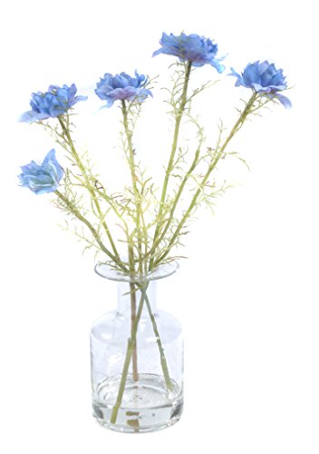 Gold Eagle USA Artificial Light Blue Nigella Plant with Water Glass Jar, 13"