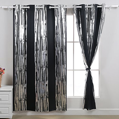 Deconovo Foil Printed Blackout Curtain, brings a comfortable and lively atmosphere in your home. Neutral background color bring fabric an incredible beauty. These curatins are stylish and have a unique design. Made of 100% polyester, they are silky, soft, drapery and very pleasant to touch when compared to the other curtains. All seams are nice and straight, no loose threads. Striped patterns also have no visual defects. Overall, it makes the curtain hang nicely and gives an expensive look. They are durable, the fabric is not at all flimsy, and they are made to last for a long time! They are super easy to hang.