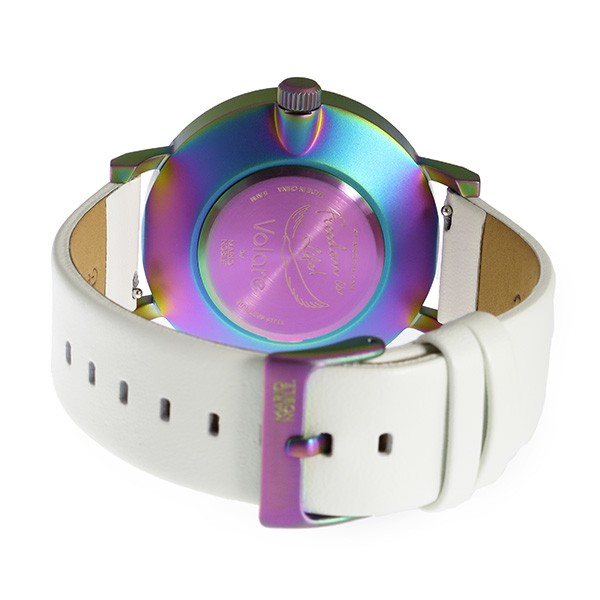 クオーツ、5気圧防水、カラー:ホワイト(文字盤)、レインボウ(ケース)、ホワイト(ベルト)