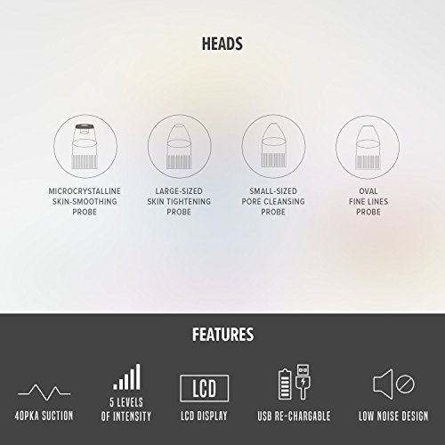 -. Feature : Adjustable Suction Force with One-Click Design: Provides 4 removable probes with the different shape suctions to meet different facial needs. / Multi-Function and Professional Blackhead Remover: Final dual to anyone who wants to challenge blackheads, or other blemishes and facial skin problems. / USB Charging, Portable, Safe and Convenient to Use: Easy for daily use, suitable for different skin types; Non-Toxic and harmless, the mildness has been clinically verified. / Blackhead Problems Solved: Coarse pore, rough skin, dark skin, exfoliates dead skin, blackhead and pores of skin, dirt nose, Firm and Improves skin elasticity. Easily cleans up the blackhead, Removes dirt grease inside pores, reduces dead skin and fine lines, massage and tighten the skin. / Original: This is the only original premium high quality Blackhead Remover in the market, make the right choice