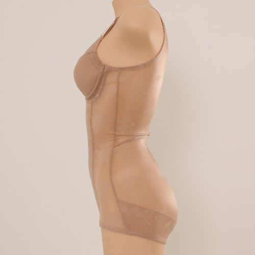몰드 올인원 직조와 고밀도 스폰지를 결합하여 몰드를 찍어 형태성이 좋고 쭈글 거리는 현상이 거의 없음.풀사이드 기능의 컵으로 설계하고 컵아래 메쉬 테이프가 활동성을 좋게 해 줌. 몸판 기능으로는 앞판 안감에 숨겨진 타미 기능이 있어 아랫배를 효과적으로 눌러 주며 다리쪽은 원단을 접어 봉제 하여 배기지 않게 처리함.