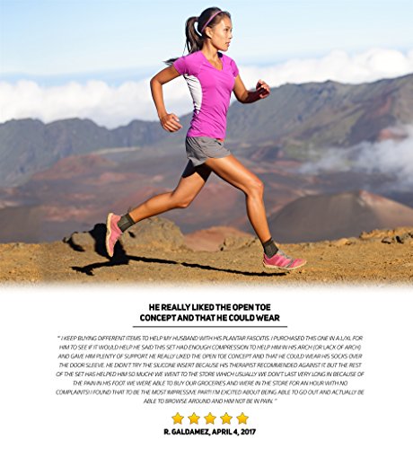 Are you suffering from the pain and discomfort of Plantar Fasciitis and find most foot sleeves to be low quality, and not offer long lasting relief, then your search is finally over when you purchase our Fittest Pro 4-in-1 Bundle Product Set of 1 Pair Foot Sleeves, 1 Pair Silicone Gel Heel Protectors, 1 Pair Arch Support Therapy Wrap 1 Pair Cushioned Arch Support start enjoying the benefits of endurance and stay active for longer periods of time! Pair of Compression Foot Sleeve: This enables you to recover faster and return to an active lifestyle or training program by soothing foot pain and discomfort with plantar fasciitis arch support, and providing proven relief from heel and arch pain. Pair of Arch Support/Plantar Fasciitis Therapy Wrap: This offers consistent compression throughout the foot to help alleviate arch and heel pain associated with plantar fasciitis. These Heel Cups reduce Achiles Tendon, Metatarsal, Heel Pain, Heel Spur and swelling. Pair of Plantar Fasciitis Silicone Gel Heel Protectors: This is designed with medical grade gel to provide ultimate safety and comfort. This Heel Protectors, Heel Arch Support provides compression to alleviate the symptoms of plantar fasciitis. Pair of Cushioned Arch Support: It provides support, comfort and peace of mind to tired achy feet. The arch support pad offers consistent compression throughout the foot arch to help alleviate arch and heel pain. We Stand By Our Product With An Unbeatable 100% Money-Back Guarantee And Our Iron-Clad Promise If, for whatever reason, you don't absolutely love your 8-Piece Foot Sleeve Bundle Set, we'll refund every single penny! (Or replace it, if there is a problem). Buy with absolute confidence. Order yours now by simply clicking the "Add To Cart" button on this page. Please refer to the sizing chart in the images to select the correct size. 0 |