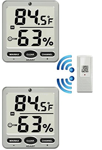 Included remote sensor (F007TH) transmission range of up to 300 feet line of sight (100 feet under most conditions)