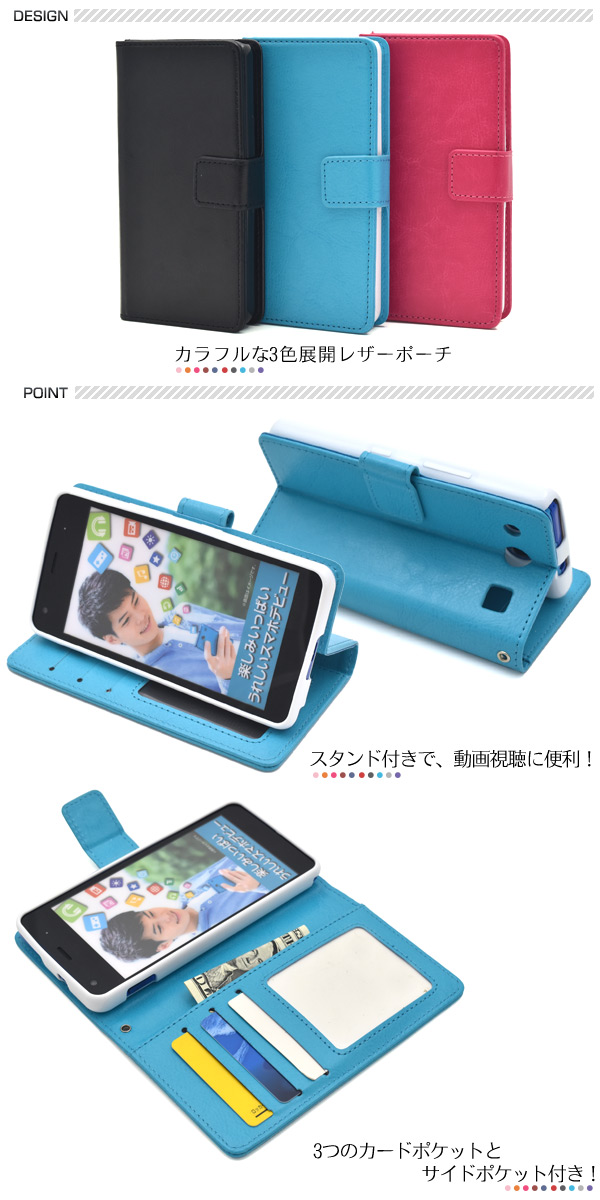 カラフルな3色展開!miraie f KYV39用カラーレザーケースポーチ