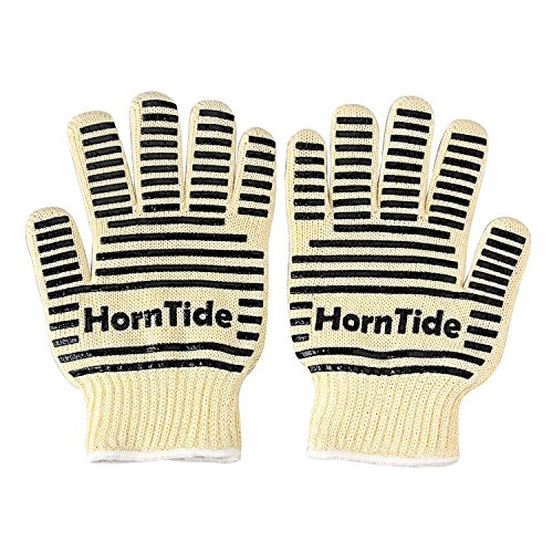 HornTide Cut & Flame Resistant Gloves Aramid Fiber Oven Mitts Withstand 350°C 662°F Five-Fingered Grip for Baking Cooking Grilling One Size Fits Most (Black)