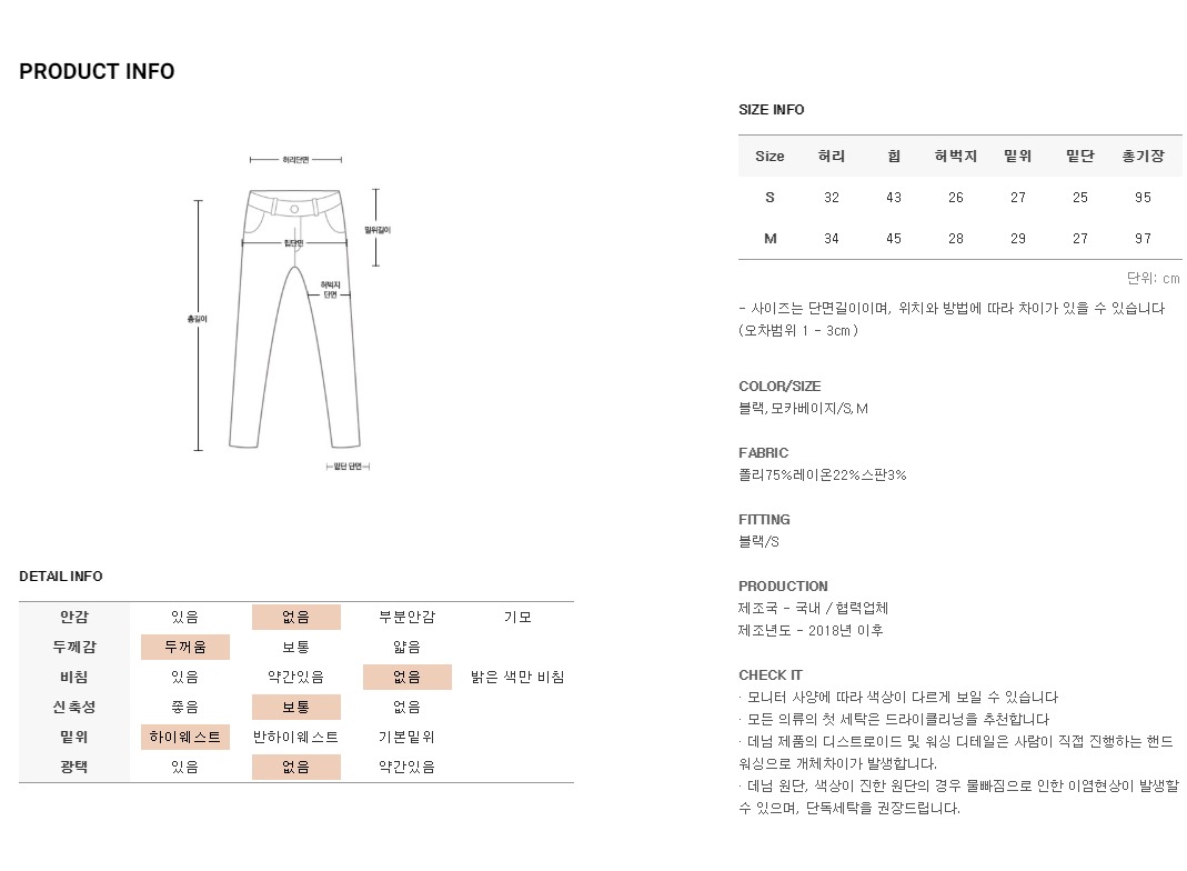 탄탄하고 늘어짐없는 소재로 오래도록 착용하기 좋고