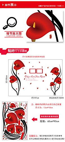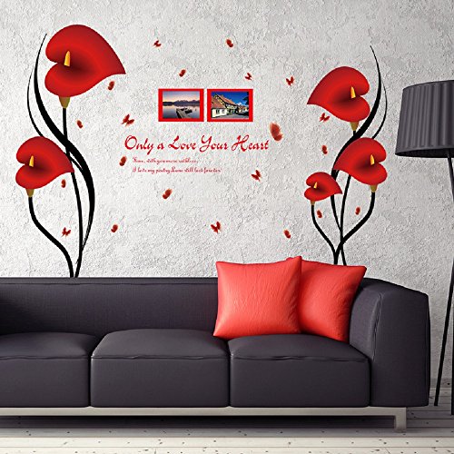 Amaonm Fashion 3D Vinyl Red Flower Wall Stickers Decor Nursery Morning Glory Flowers Wall art Decals Removable DIY home Decal Red Lip & Photo Frame Lettering art for Girls room Living room Bedroom