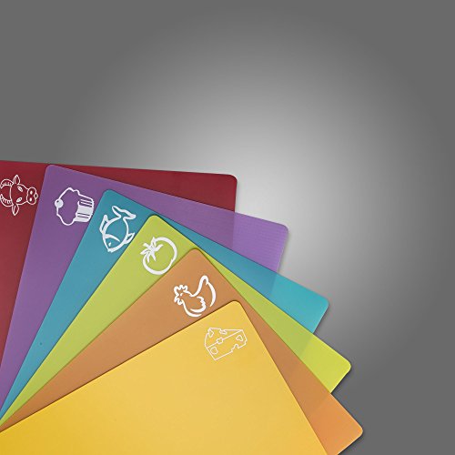 Leano Line 6-Piece Color Coded Flexible Plastic Cutting Mats with Food Icons, Replacement for Cutting Board