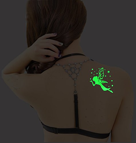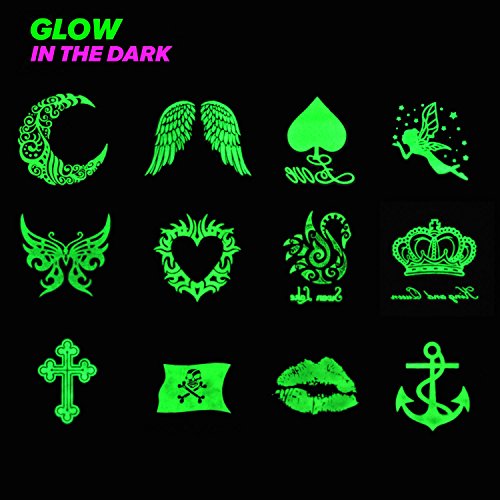 Feskin 12 Pcs Temporary Art Tattoo Glow in the Dark, Fashion Removable Waterproof Bright Luminous Body Sticker for Women and Girls (12Pcs-Luminous)