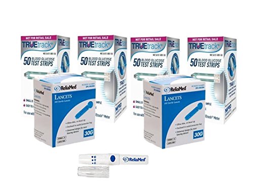 -. Feature : Sold As: 4 Boxes of 50 TRUEtrack Test / Lancets: Reliamed 30 Gauge Lancets, 2 Box of 100 Each / Lancing Device: Reliamed Mini Lancing Device(1 Each) / Requires only a 1μL blood sample to provide fast, accurate results. / Use with TRUEtrack Meter