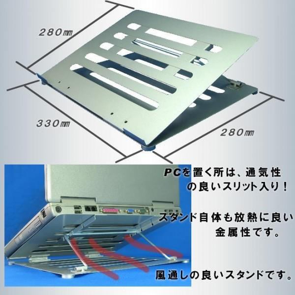 スタンド本体のスリットで通気性が良く、メタル素材なので放熱効果も高いノートPC用スタンドです。ご家庭・出張先・電車の中などでも、ノートPCの画面を見やすく、キーボードも打ちやすい角度に調整できるスタンドです。 |