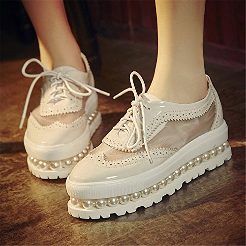 (RAINSTAR)/Women's/Sandals/DIRECT FROM USA/RAINSTAR Women's Round Toe Lace Up Platform Casual Breathable Leather Net Shoes