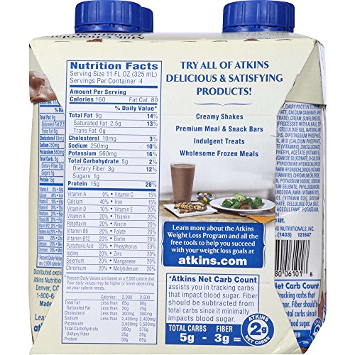 Atkins Milk Chocolate Delight Shake, 11Fl oz, 4 Count (Pack of 3)